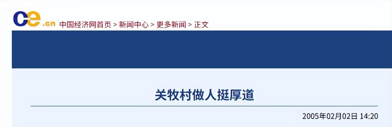 信息来源:中国经济网 2005-02-02——关牧村做人挺厚道
